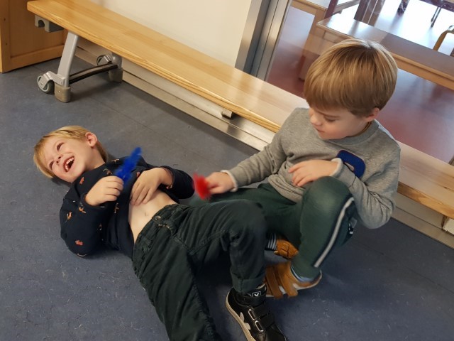 Zielenpiet deed ons het maatjes spel spelen: zoek je maatje. Een soort levende memory.